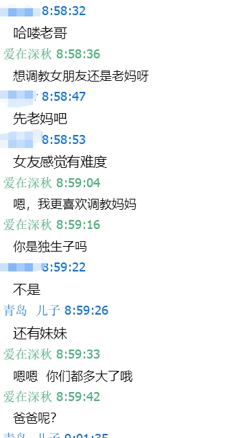 说的对哦,加上第二天,估计妈妈已经被我撩的春心荡漾的不行了,后来结束了话题,睡觉了,今天不怎么理我,估计是昨天聊的太猛了。